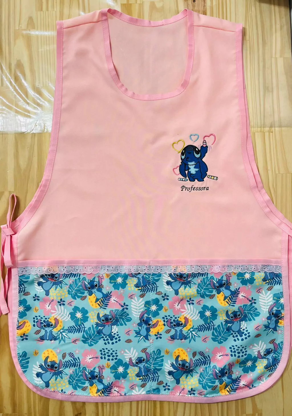 Nosso avental bata com a temática do Stitch é a escolha perfeita para quem quer adicionar um toque de diversão e personalidade ao seu look de trabalho! O bordado do personagem está incluso, mas se você quiser adicionar seu nome + profissão, basta acessar a categoria "Serviço de Bordado" em nosso site.