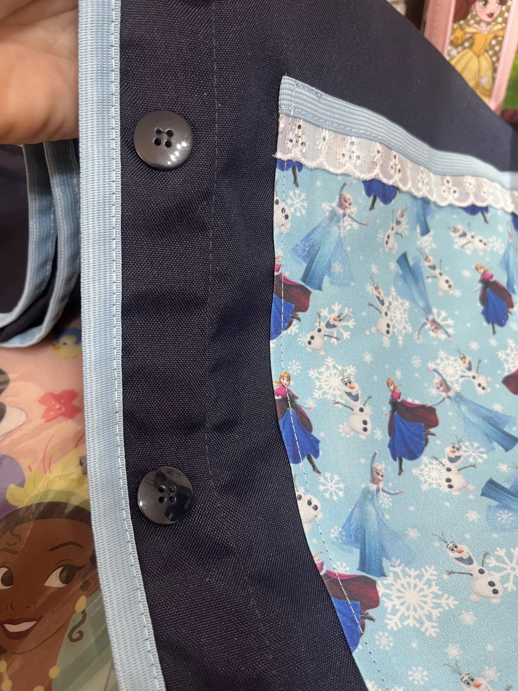 O serviço de bordado NÃO ESTÁ INCLUSO NESSA PEÇA, mas você se adicionar facilmente na categoria SERVIÇO DE BORDADO nesse site. Além da Elsa, tem a Ana como opção! Personalize com sua profissão + seu nome se quiser arrasar ainda mais na escola!